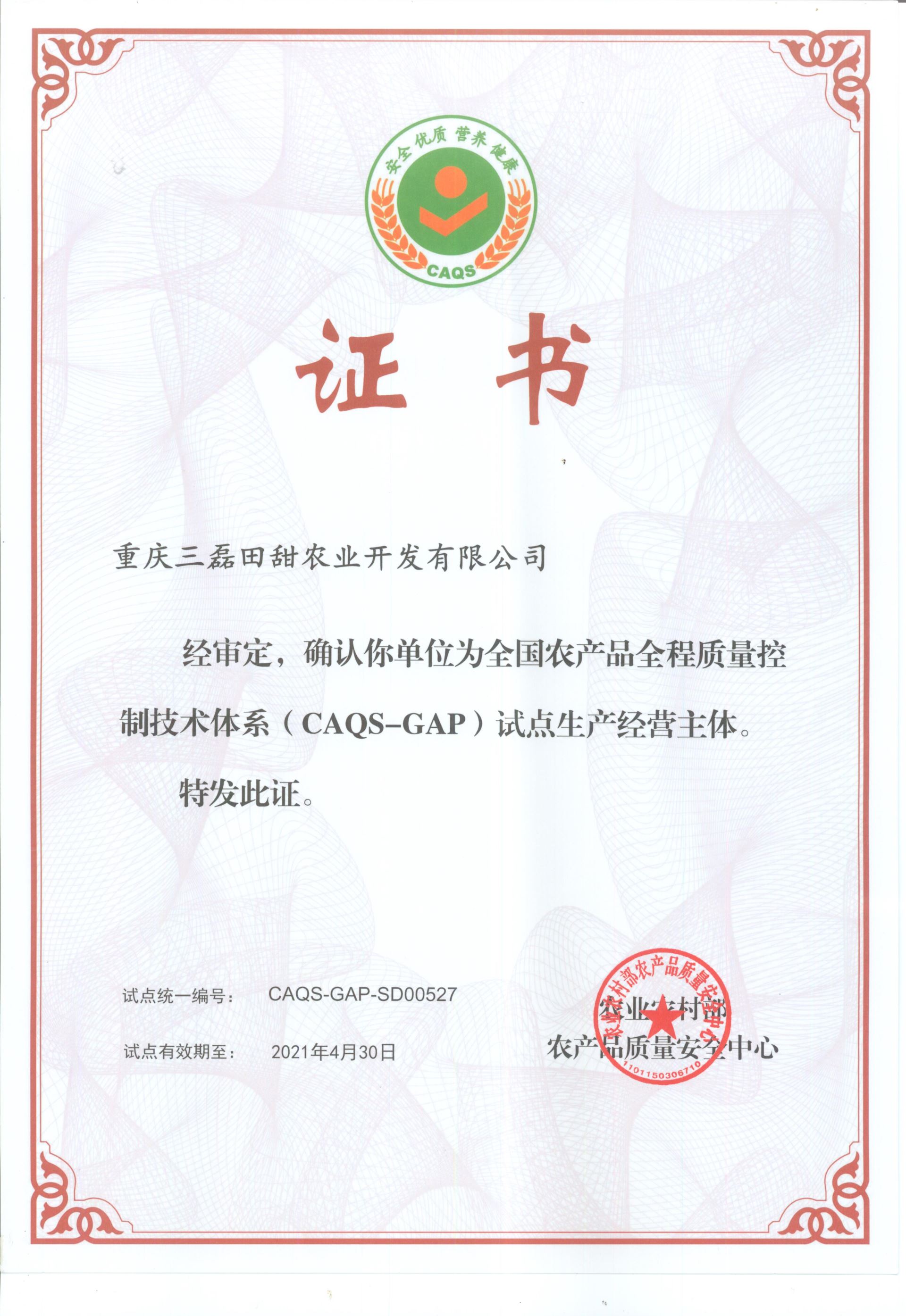 三磊田甜入選全國農(nóng)產(chǎn)品質(zhì)量控制技術(shù)體系(CAQS-GAP)首批試點(diǎn)生產(chǎn)經(jīng)營主體
